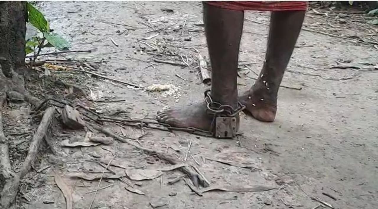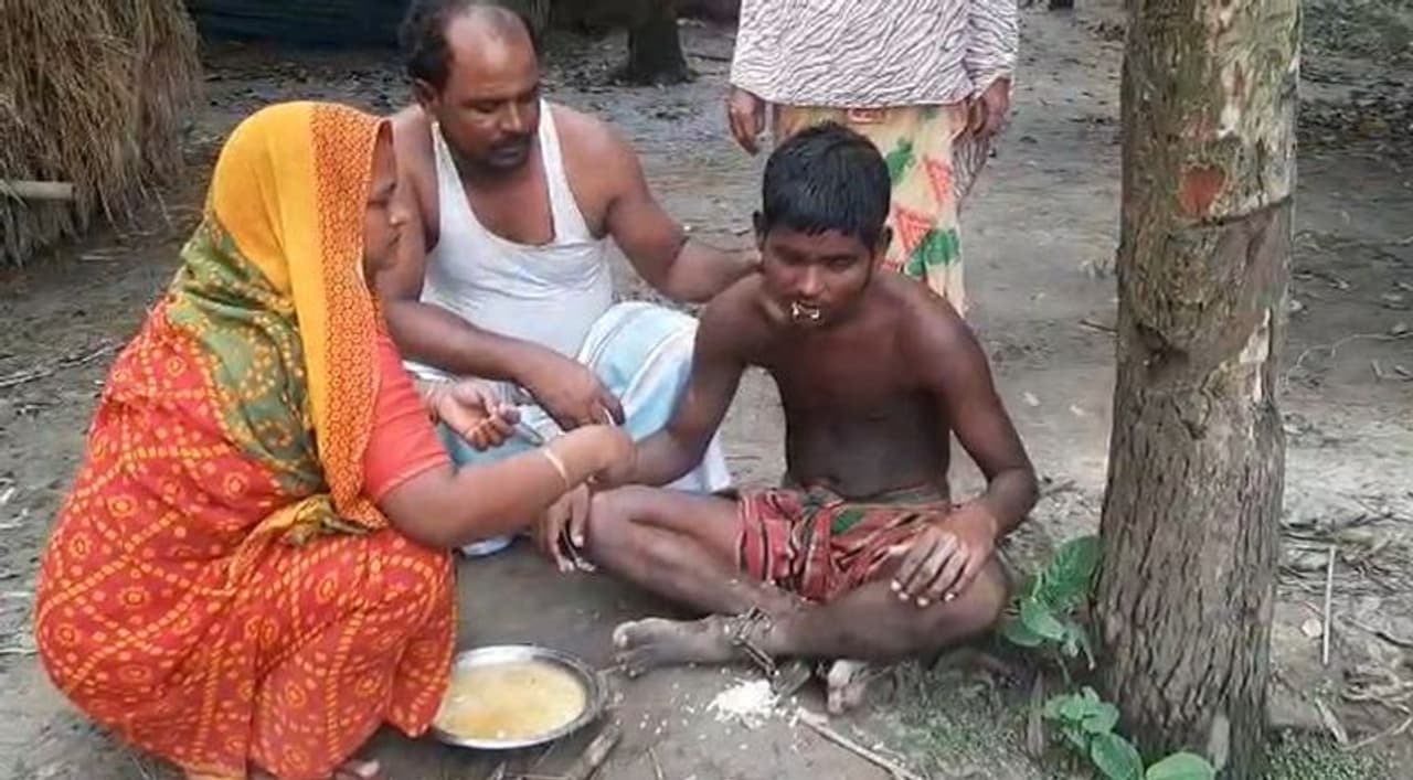 প্রায় ৫ বছর ধরে বাড়ির সামনে গাছের সঙ্গে শেকল দিয়ে বাঁধা রয়েছেন যুবক। শেকল বাঁধা থাকার ফলে পায়ে ঘা হয়ে গিয়েছে। মালদহর হরিশ্চন্দ্রপুর ২ নম্বর ব্লক এলাকার ভালুকা গ্রাম পঞ্চায়েতের একবালপুর গ্রামের ঘটনা।