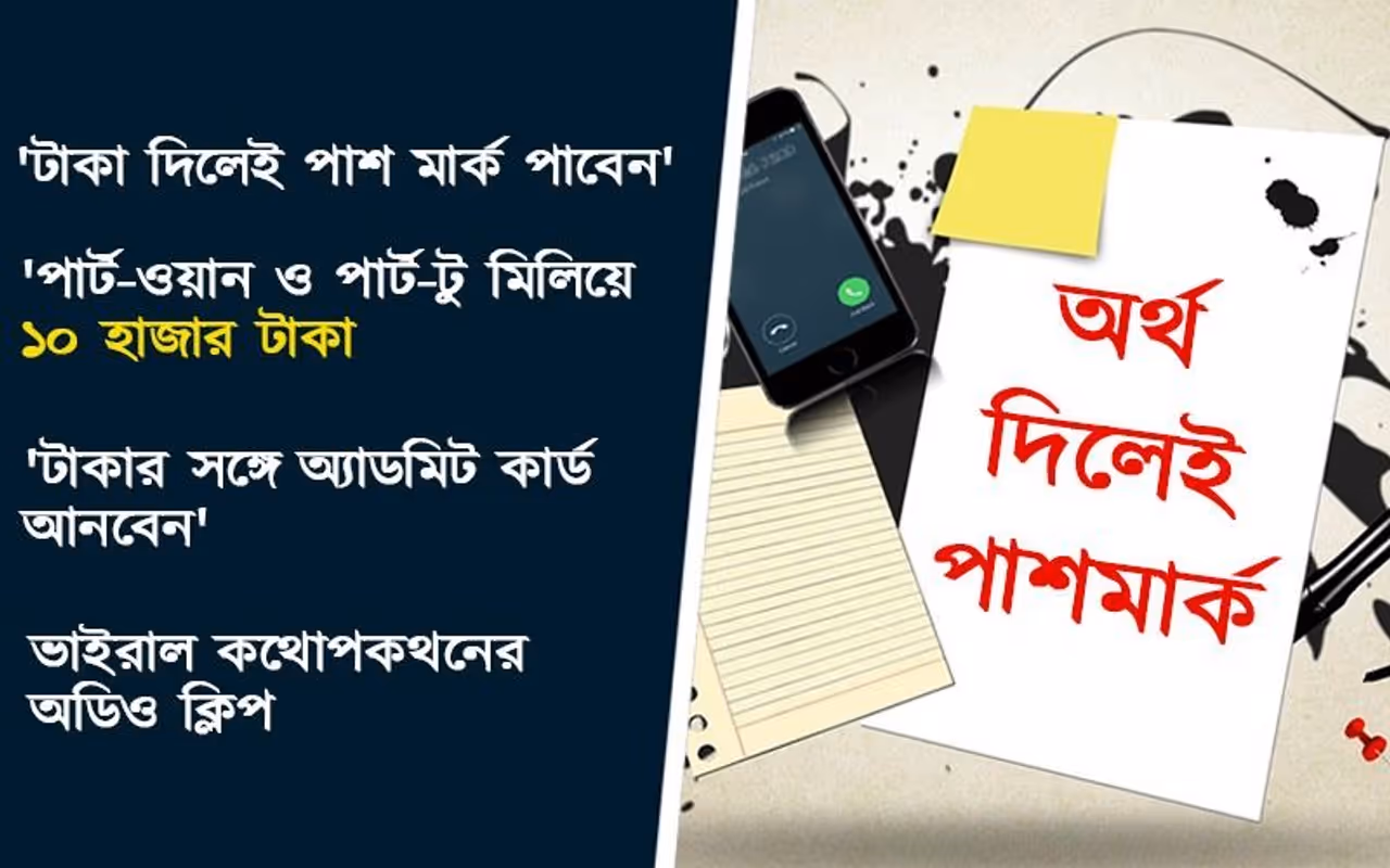 টাকা দিলেই পাশ মার্ক 'পার্ট-ওয়ান ও পার্ট-টু এর জন্য ১০ হাজার' 'টাকার সঙ্গে অ্য়াডমিট কার্ড আনবেন' ভাইরাল কথোপকোথনের অডিও ক্লিপ