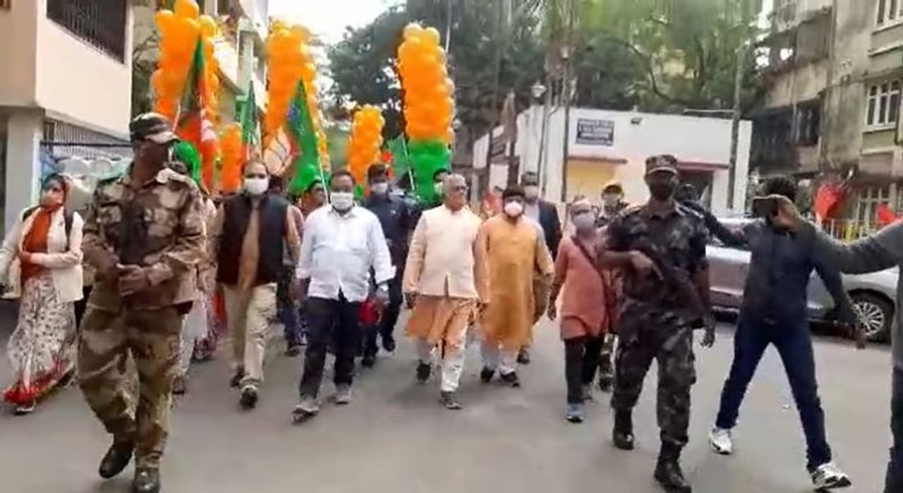 বৃহস্পতিবার সকালে বিধাননগর পুরভোটের দুই বিজেপি প্রার্থীর প্রচারে যান দিলীপ ঘোষ। মুখে গেরুয়া মাস্ক পরিহিত দিলীপকে ঘিরে কর্মী সমর্থকদের ভিড় লক্ষ্য করা যায়। যদিও বিজেপি নেতার দাবি, তাঁরা করোনা বিধি মেনে পাঁচজনকে নিয়ে প্রচারে বেরোন।