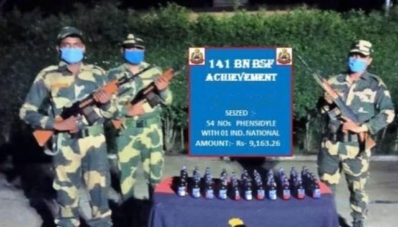 মধ্যরাতে বিএসএফের সাফল্য কাঁটাতার টপকে মাদক পাচারের ছক বানচাল গ্রেফতার মাদক কারবারের অন্যতম পান্ডা টানা তল্লাশি চালিয়ে ৫৪ বোতল ফেন্সিডিল উদ্ধার