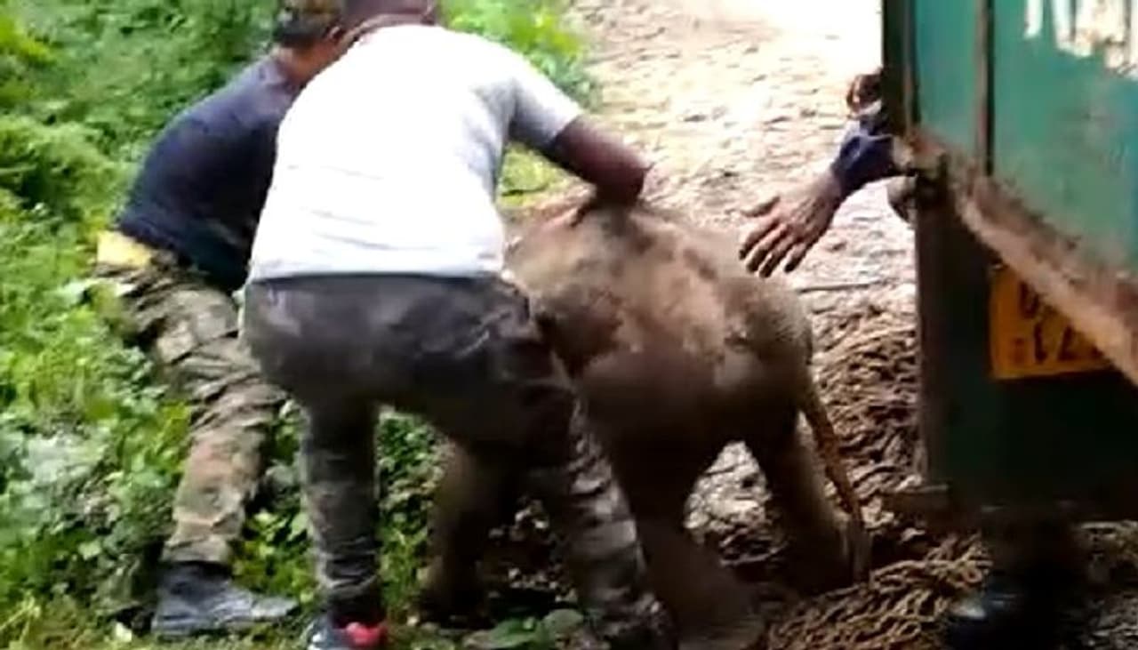 লোকালয়ে ঢুকে পড়া হাতির দলের একটি শিশু সদস্য পড়ে যায় নালায়। সেটিকে উদ্ধার করতে নাজেহাল অবস্থা হয় বনকর্মীদের।