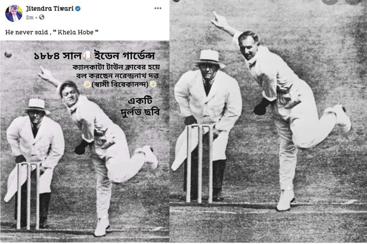 ইডেন গার্ডেন্সে স্বামী বিবেকানন্দের ( Swami Vivekananda) ক্রিকেট খেলার ছবি বলে, একটি ছবি পোস্ট করেছেন বিজেপি (BJP) নেতা জিতেন্দ্র তিওয়ারি (Jitendra Tiwari)। ছবিটি কি সত্যিকারের, উঠছে প্রশ্ন।