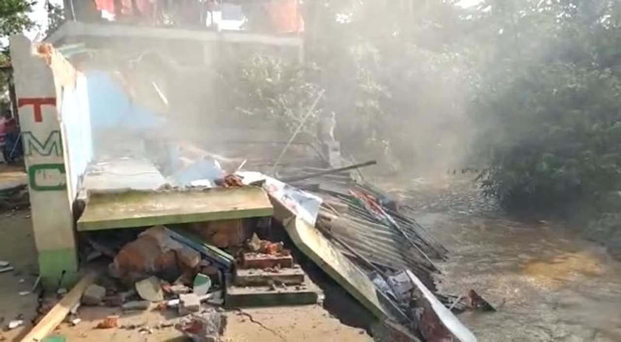 দু'দিন ধরে আর বৃষ্টি না হলেও এখনও বহু জায়গায় বৃষ্টির জল পেয়ে মাটির দেওয়াল নরম হয়ে রয়েছে। যে কোনও সময় বড় কোনও দুর্ঘটনা ঘটতে পারে। গড়বেতায় দেওয়াল চাপা পড়ে এক মহিলার মৃত্যুর ঘটনাও ঘটেছে। এবার মেদিনীপুর সদর ব্লকে জলের তোড়ে ভেঙে পড়ল তৃণমূলের কার্যালয়। ঘটনাটি ঘটেছে রবিবার সকাল সাড়ে সাতটা নাগাদ মেদিনীপুর সদর ব্লকের বিশ্রীপাট এলাকায়।