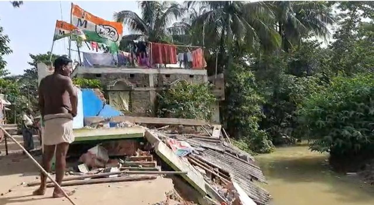 দু'দিন ধরে বৃষ্টি আর হয়নি। কিন্তু, তার আগের ভারী বৃষ্টির জেরে এখনও প্লাবিত পশ্চিম মেদিনীপুরের একাধিক এলাকা। জলে ডুবে গিয়েছে বেশ কিছু গ্রাম। বিপর্যস্ত জনজীবন। ভেঙে পড়েছে একাধিক বাড়ি। আর এবার টানা বৃষ্টির পর জলের তোড়ে 'তাসের ঘর'-এর মতো ভেঙে পড়ল মেদিনীপুর সদর ব্লকে তৃণমূলের কার্যালয়।