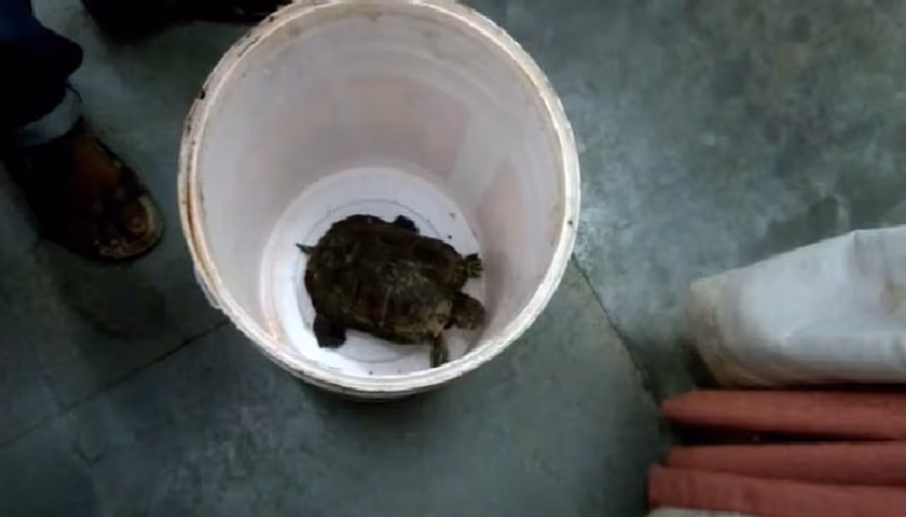 মঙ্গলবার বিকেলে অনিমেষ মণ্ডল নামের ওই ব্যক্তি রাস্তা দিয়ে যাওয়ার সময় স্থানীয় একটি জলাশয় থেকে কচ্ছপটিকে বেরিয়ে আসতে দেখেন। সেখানেই সেটিকে ধরে ফেলেন তিনি। কচ্ছপটিকে বাড়ি নিয়ে যান অনিমেষ বাবু। রাতে বিষয়টি জানতে পেরে জয়নগর থানার পুলিশ ঘটনাস্থলে গিয়ে কচ্ছপটিকে উদ্ধার করে।