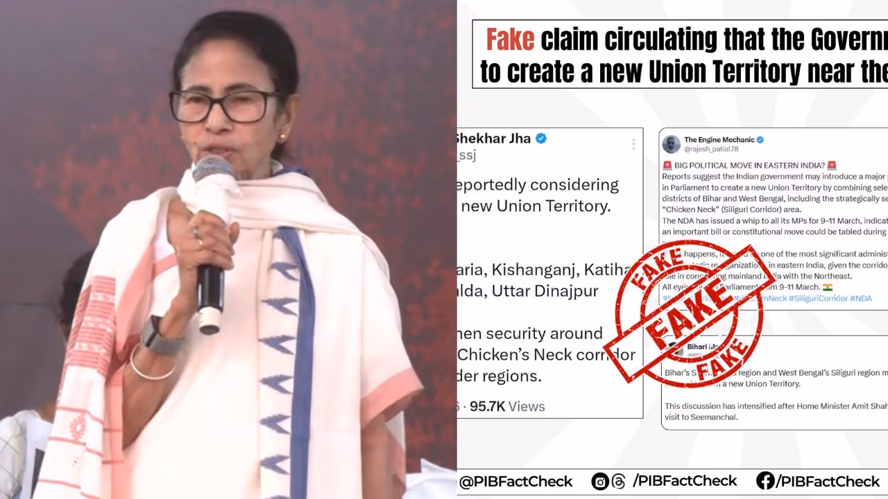 শিলিগুড়ি করিডোরের কাছে বিহার ও পশ্চিমবঙ্গকে কেন্দ্র করে একটি নতুন কেন্দ্রশাসিত অঞ্চল তৈরি করা হচ্ছে বলে দাবি করা সোশ্যাল মিডিয়া পোস্টগুলিকে সরকার খণ্ডন করেছে। প্রেস ইনফরমেশন ব্যুরোর ফ্যাক্ট চেক ইউনিট এই দাবিগুলিকে ভুয়s বলে অভিহিত করেছে। তারা বলেছে যে সরকারের কাছে এই ধরনের কোনও প্রস্তাব বিবেচনাধীন নেই। সরকার নাগরিকদের তথ্যের জন্য সর্বদা সরকারি উৎসের উপর নির্ভর করার এবং শেয়ার করার আগে তা যাচাই করার আহ্বান জানিয়েছে।