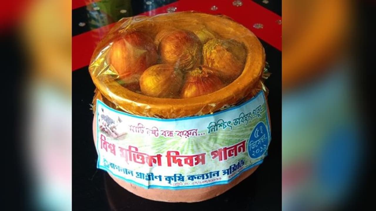 গত বৃহস্পতিবার সন্ধ্যায় বাগনানের পান আড়তে পালিত হয় বিশ্ব মৃত্তিকা দিবস। উদ্যোক্তা বাগনান গ্রামীণ কৃষি কল্যাণ সমিতি। অনুষ্ঠানে অতিথি হিসেবে উপস্থিত ছিলেন হাওড়া জেলা পরিষদের বন ও ভূমি সমিতি প্রাক্তন কর্মাধ্যক্ষ মানস বসু, অধ্যাপক আক্রামূল হক-সহ আরও অনেকে। সকলের হাতে উপহার হিসেবে মাটির হাঁড়িতে ভর্তি পেঁয়াজ তুলে দেন উদ্যোক্তারা।বিশ্ব মৃত্তিকা দিবসের অনুষ্ঠানে প্রধান উদ্যোক্তা ও বাগনান-১ পঞ্চায়েত সমিতির বন ও ভূমি দপ্তরের কর্মাধ্যক্ষ চন্দ্রনাথ বসু বলেন, বাজারে এক কেজি পেঁয়াজের দাম দেড়শো টাকা। হেঁসেলে পেঁয়াজের জোগান দিতে গিয়ে হিমশিম খেতে হচ্ছে। মাংস ও মাছের কয়েকটি পদ আবার পেঁয়াজ ছাড়া রান্নাও করা যায় না। ফলে গৃহিণীদেরও মুখভার। তাই পেঁয়াজ ছাড়া আর কোনও উপহারের কথা ভাবতেই পারেননি।