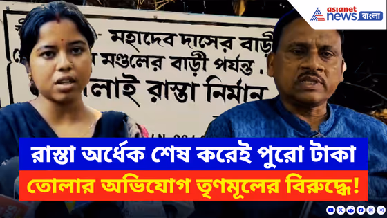 ‘আমাদের পাড়া আমাদের সমাধান’ প্রকল্পে রাস্তা নির্মাণ নিয়ে বিতর্ক। অভিযোগ, ১০০ মিটার রাস্তার বদলে মাত্র ৫০ মিটার কাজ করা হয়েছে। অর্ধেক কাজ করেই টাকা তোলার বিস্ফোরক অভিযোগ তৃণমূলের বিরুদ্ধে। প্রকল্পে প্রায় ১ লক্ষ ৭৬ হাজার টাকা বরাদ্দ ছিল।