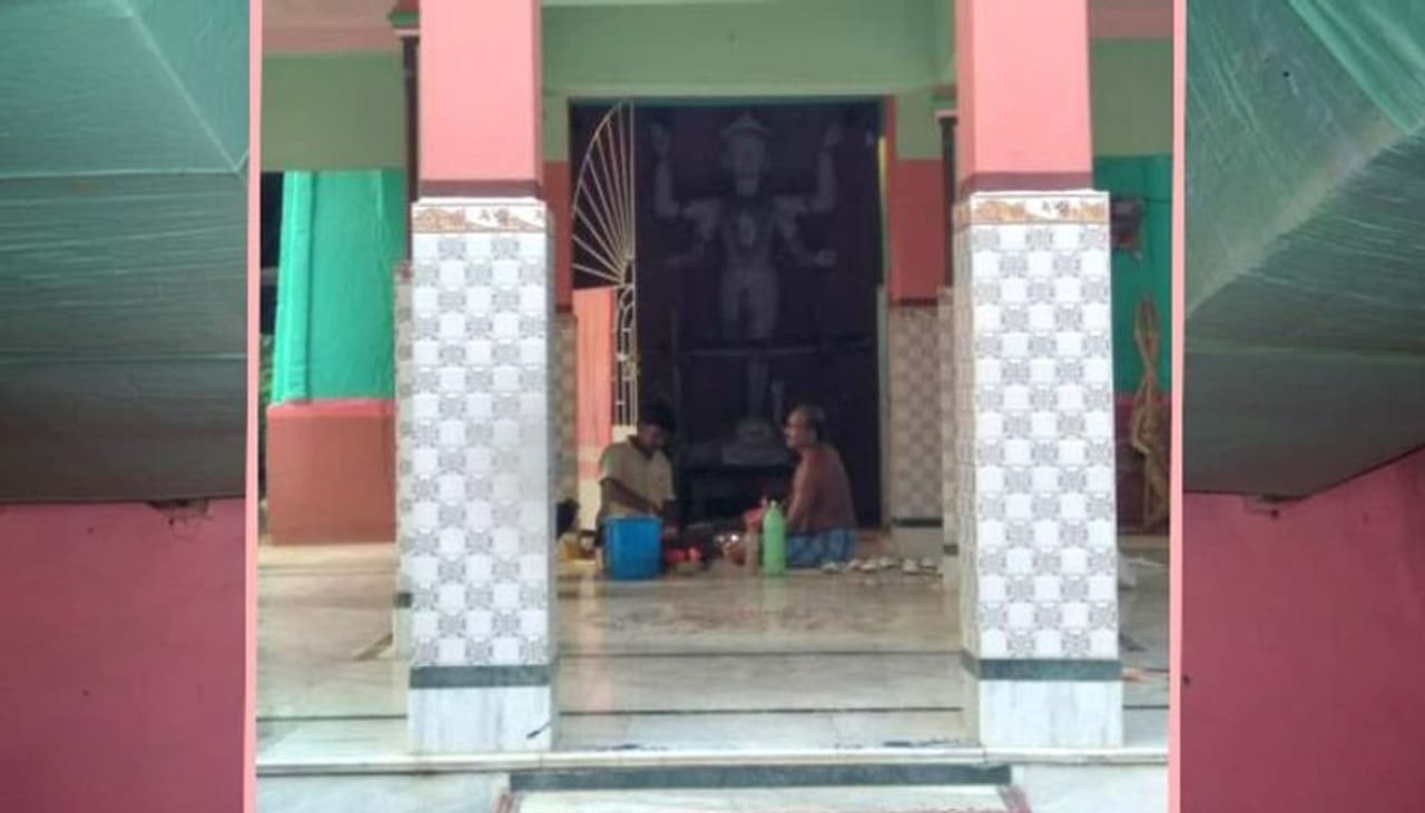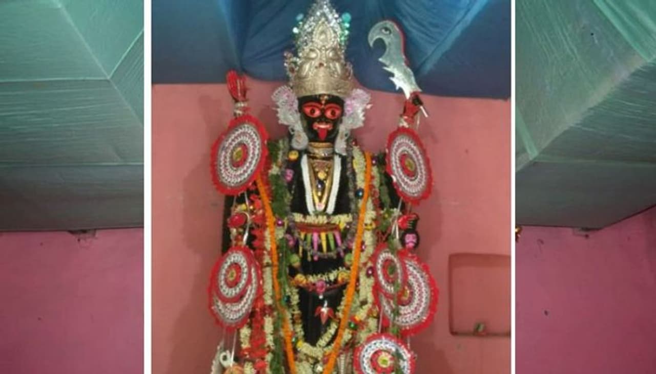 বাড়ির ১০০ মিটারের মধ্যেই এই মন্দির। মায়ের মূর্তির ঠোঁটের কোণে রক্ত ও লাল পাড় আঁকা থাকে। দেবী নির্জনতা পছন্দ করেন। তাই মন্দিরের জ্বালানো হয় কেবল মোমবাতি। বাজানো হয় না কোনও লাউড স্পিকার।