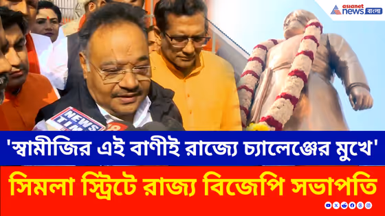 Samik Bhattacharya : বিবেকানন্দ জয়ন্তীতে শ্রদ্ধাঞ্জলি শমীক ভট্টাচার্যের। সিমলা স্ট্রিটে রাজ্য বিজেপি'র সভাপতি। 'স্বামীজি বলেছিলেন, গর্ব করে বল আমি হিন্দু'। 'আজ রাজ্যে চ্যালেঞ্জের মুখে এই বাণী'। 'পশ্চিমবঙ্গে মধ্যযুগের সুলতানি রাজ চলছে'।