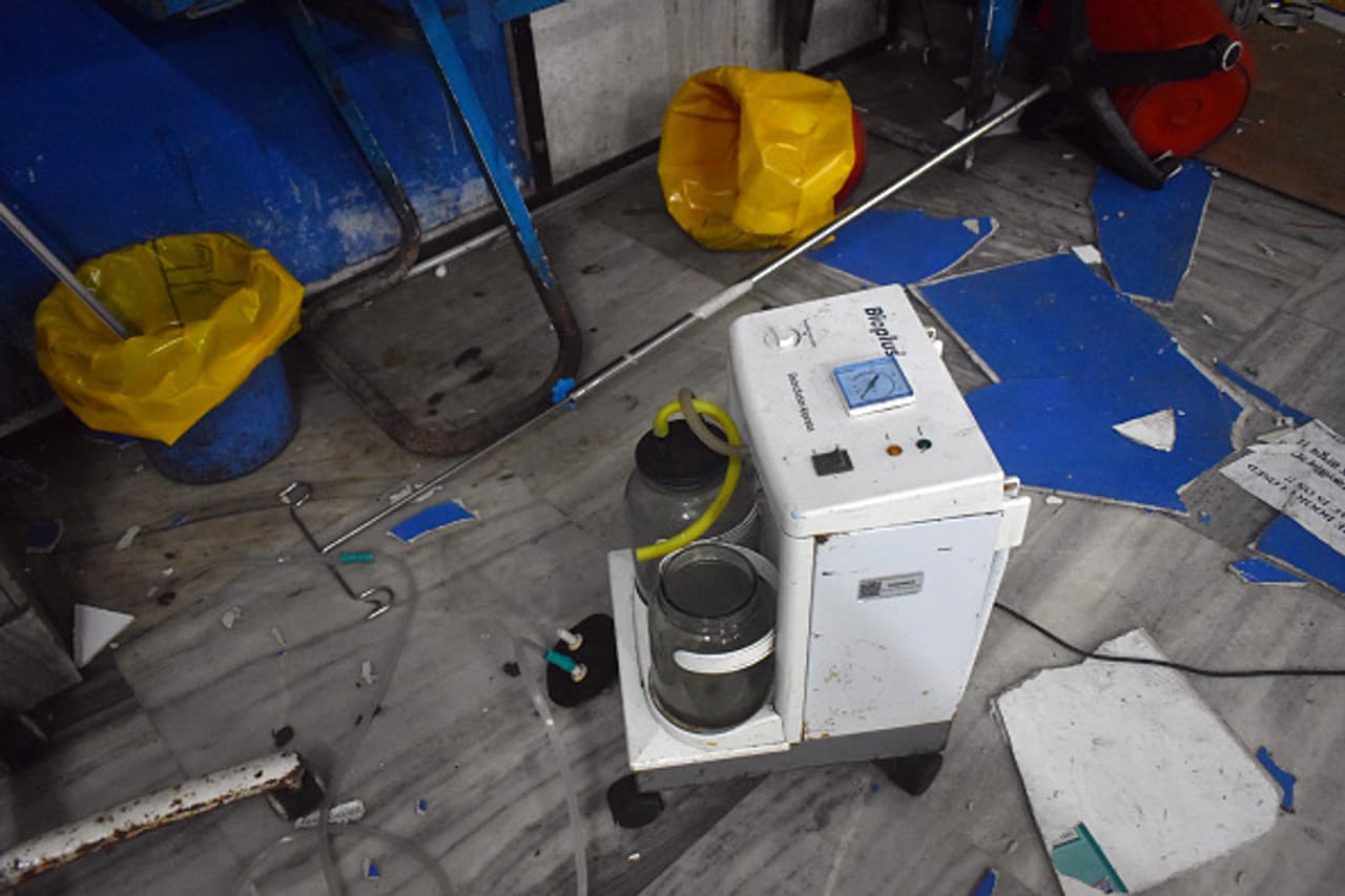 মেঝেতে ছড়িয়ে অজস্র কাচের টুকরো। রোগীর শয্যা উল্টে পড়ে রয়েছে। জীবনদায়ী ওষুধ, ইঞ্জেকশন রাখার ফ্রিজ ভাঙাচোরা।