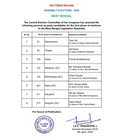 যে সাতটি আসনে প্রার্থী বদল করল কংগ্রেস