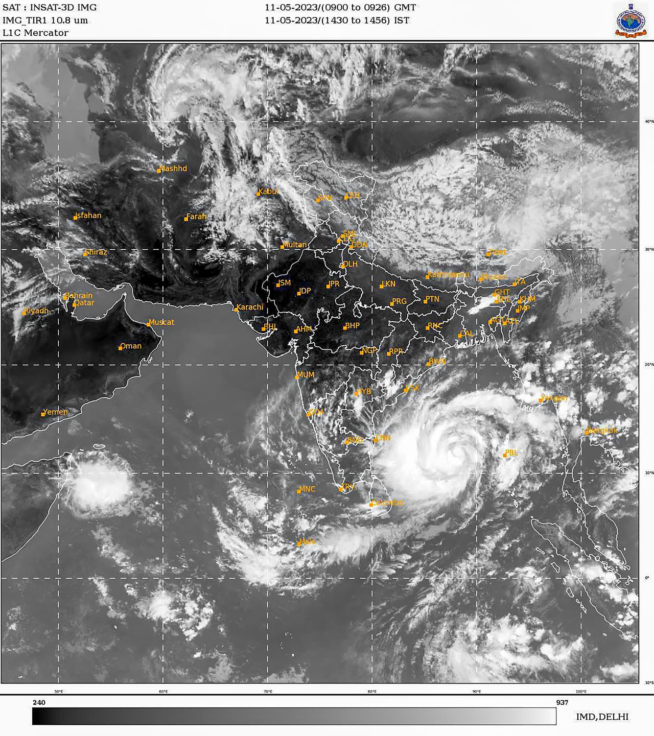 টুইট করে আইএমডি জানিয়েছে যে "দক্ষিণ-পূর্ব বঙ্গোপসাগরের গভীর নিম্নচাপটি গত ছয় ঘন্টায় ৮ কিলোমিটার বেগে উত্তর-উত্তর-পশ্চিম দিকে সরে গেছে, একটি ঘূর্ণিঝড় "মোকা" হিসাবে ঘনীভূত হয়েছে এবং ১১ই মে ২০২৩ তারিখে সন্ধে সাড়ে পাঁচটায় কেন্দ্রীভূত হয়েছে। ১১.২°এন অক্ষাংশ এবং ৮৮.১° ই দ্রাঘিমাংশের কাছাকাছি একই অঞ্চল, পোর্ট ব্লেয়ারের প্রায় ৫১০ কিলোমিটার পশ্চিম-দক্ষিণ-পশ্চিমে, কক্সবাজার (বাংলাদেশ) থেকে ১২১০ কিলোমিটার দক্ষিণ-দক্ষিণপশ্চিমে এবং সিত্তওয়ে (মিয়ানমার) থেকে ১১২০ কিলোমিটার দক্ষিণ-দক্ষিণপশ্চিমে অবস্থান করছে।"