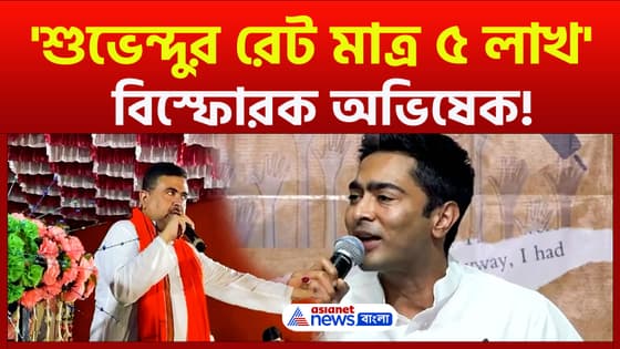 'শুভেন্দুর রেট মাত্র ৫ লাখ টাকা। শুভেন্দু অধিকারী পাঁচ লাখ টাকায় বিক্রি হয়। ম্যাথু স্যামুয়েলসের কাছ থেকে ৫ লাখ টাকা নিয়েছে শুভেন্দু। যে ৫ লাখ টাকায় বিক্রি হয় তাকে কেউ উপমুখ্যমন্ত্রী পদ অফার করে না।' শুভেন্দুর উপমুখ্যমন্ত্রী পদ নিয়ে বিস্ফোরক অভিষেক