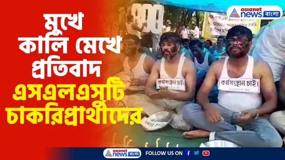 চাকরি চেয়ে ধর্নায় পার ৮০০ দিন, মুখে কালি মেখে প্রতিবাদ এসএলএসটি চাকরিপ্রার্থীদের