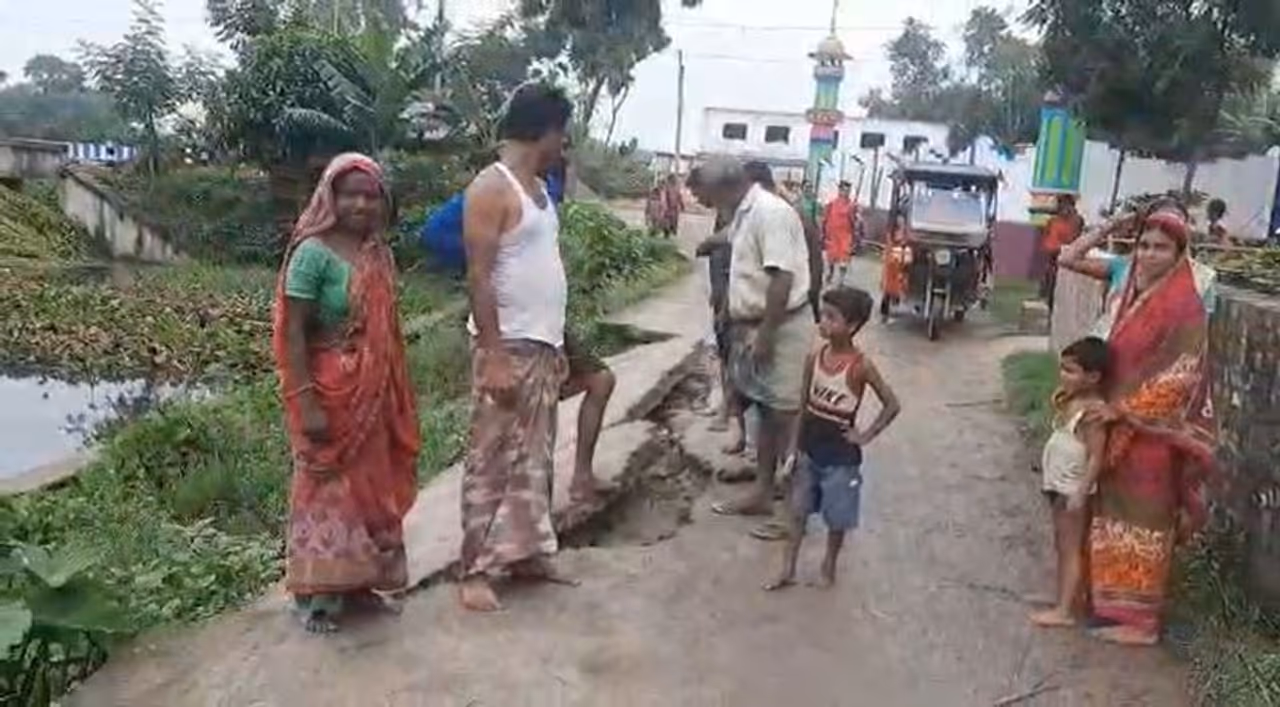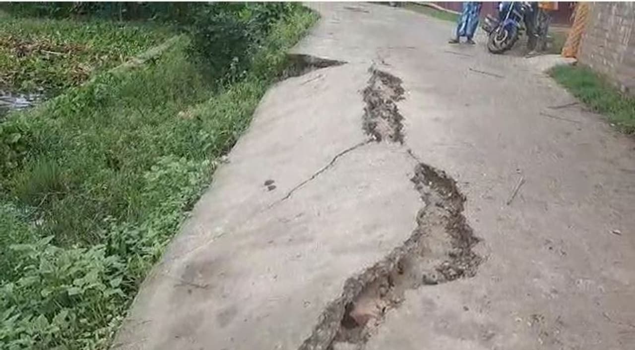 কয়েক মাস আগেই লক্ষাধিক লক্ষ টাকা খরচ করে তৈরি করা হয়েছিল ৭০ মিটার রাস্তা। কিন্তু, ছ'মাস যেতে না যেতেই বৃষ্টির ফলে ধসে গেল ওই রাস্তার অর্ধেক অংশ। বাকি অংশে তৈরি হয়েছে বড় ফাটল। এই ঘটনাকে কেন্দ্র করে তীব্র উত্তেজনা ছড়ায় মালদহর হরিশ্চন্দ্রপুরের মহেন্দ্রপুরে।