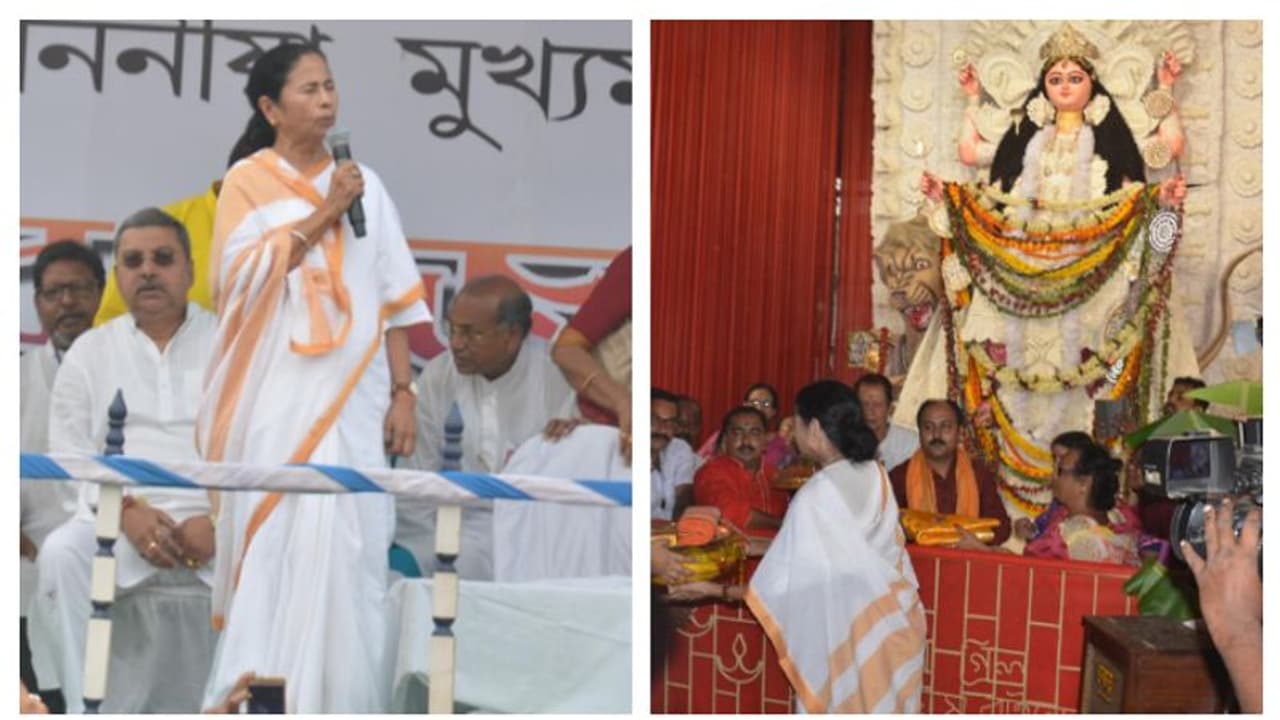 গত কয়েকবছর ধরেই জগদ্ধাত্রী পুজোয় চন্দননগরে আসেন মুখ্যমন্ত্রী। এ বারও তার ব্যতিক্রম হয়নি। এ দিনও ছিল নবমী। দুপুরের পর হেলিকপ্টারে চন্দনগর স্টেডিয়ামে নামেন মমতা। প্রথমেই তিনি চলে যান বোড় কালীতলার জগদ্ধাত্রী পুজোয়। তাঁর সঙ্গে ছিলেন স্থানীয় বিধায়ক ইন্দ্রনীল সেন। এর পরে সেখান থেকে পাশেই বোড় সর্বজনীনের পুজোয় যান মুখ্যমন্ত্রী। দু'টি জায়গাতেই ভক্তিভরে পুজো দেন মুখ্যমন্ত্রী।