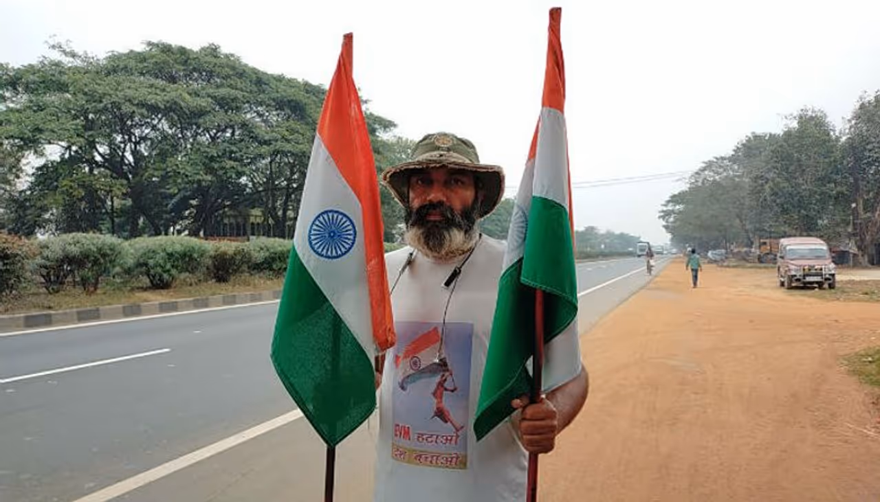ইভিএমে রয়েছে কারচুপির ভয় তাই ভোট করাতে হবে ব্যালটে দাবি তুলে পথে নেমেছেন ওঙ্কার সিং ধিঁলো ইতিমধ্যে হেঁটে ফেলেছেন ৫০০০ কিলোমিটার পথ