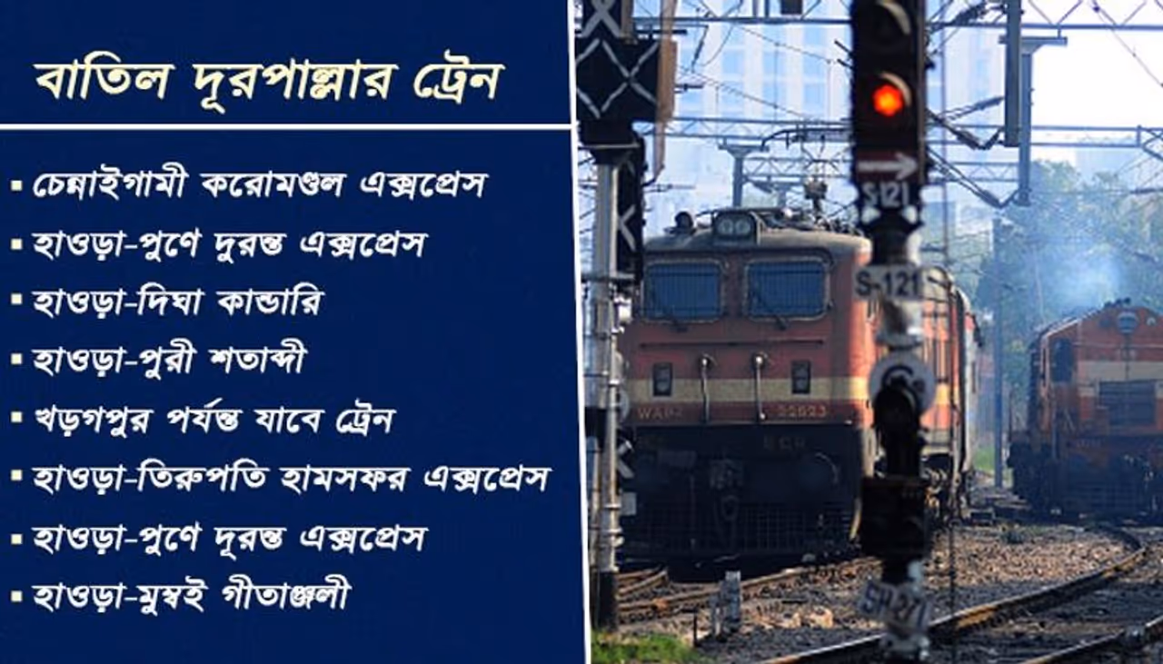 শনিবার সকাল হতে না হতেই আবারও একই চিত্র ধরা পড়ে হাওড়া স্টেশন চত্বরে। ১০টার পর থেকেই একের পর এক বাতিল হতে থাকে ট্রেন। ক্রমেই বাড়তে থাকে প্রতিক্ষারত যাত্রীর সংখ্যা। এরপরই একাধিক ট্রেন বাতিলের খবর ঘোষণা করা হয়। এদিন বাতিল করা হয়, চেন্নাইগামী করোমণ্ডল এক্সপ্রেস, হাওড়া-পুণে দুরন্ত এক্সপ্রেস, হাওড়া-দিঘা কান্ডারি, হাওড়া-পুরী শতাব্দী, খড়গপুর পর্যন্ত যাবে ট্রেন, হাওড়া-তিরুপতি হামসফর এক্সপ্রেস, হাওড়া-পুণে দূরন্ত এক্সপ্রেস ও হাওড়া-মুম্বই গীতাঞ্জলী এক্সপ্রেস।