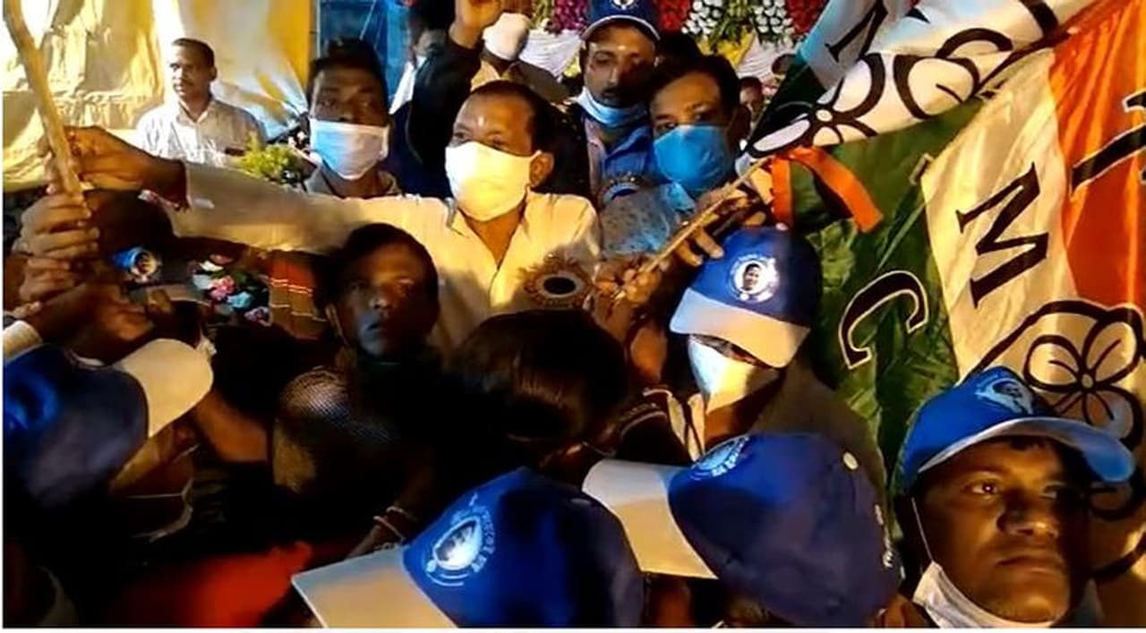 বুধবার বিকেলে নন্দীগ্রাম দুই নম্বর ব্লকের আমদাবাদ ১ নম্বর গ্রাম পঞ্চায়েতের টাকাপুরা বাজার এলাকায় বিজেপির মণ্ডল সম্পাদক স্বরূপ দাস সহ প্রায় শতাধিক বিজেপি কর্মী যোগদান করেন তৃণমূলে। এই কর্মীদের হাতে দলীয় পতাকা তুলে দেন অখিল গিরি।