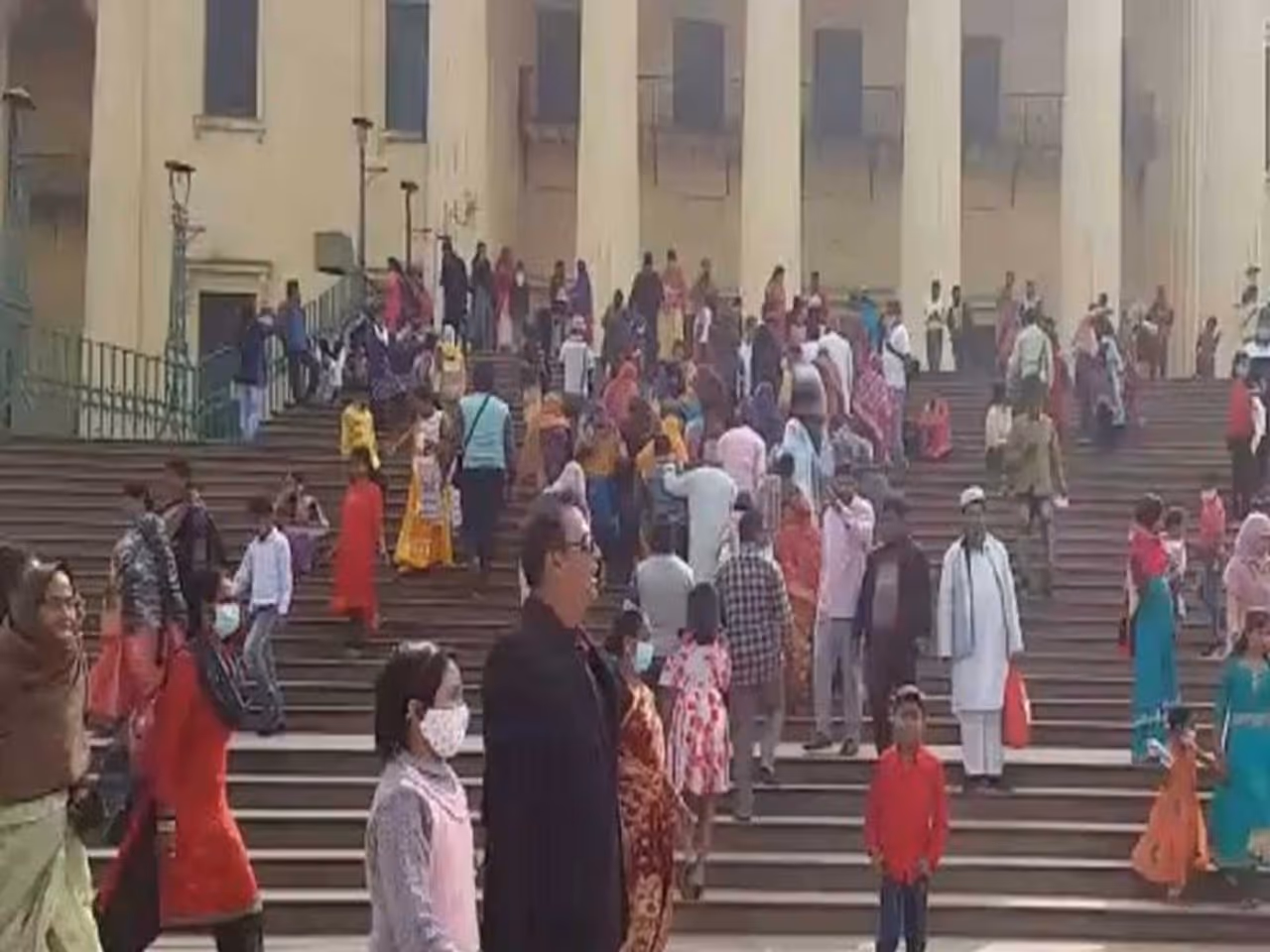 দীর্ঘদিনের মন্দা কাটিয়ে শীতের আমেজে (Winter Season) ঘুরে দাঁড়াতে শুরু করেছে মুর্শিদাবাদ (Murshidabad)। আসতে শুরু করেছে দেশি-বিদেশি পর্যটকরা (Tourist)। আর বড়দিনে (Christmas) সেই ভিড় আরও উপচে পড়েছিল। মুর্শিদাবাদের হাজারদুয়ারি প্যালেস (Hazarduari) ও প্রকৃতিতীর্থ সহ বিভিন্ন দর্শনীয় স্থানে পর্যটকদের ভিড় উপচে পড়ে। ঠান্ডার (Cold Weather) কারণে সকালের দিকে ভিড় কিছুটা কম থাকলেও বেলা বাড়ার সঙ্গে সঙ্গে হাজারদুয়ারি ও প্রকৃতিতীর্থের কাউন্টারের সামনে পর্যটকদের লম্বা লাইন লক্ষ্য করা যায়। হাজারদুয়ারির ভিতরে মিউজিয়াম ছাড়াও সবুজ মাঠে পর্যটকদের শীতের দুপুরের রোদে বসে গল্প করতেও দেখা গিয়েছিল। পর্যটকদের ঢল নামায় খুশি পর্যটন শিল্পের সঙ্গে যুক্ত বিভিন্ন পেশার মানুষ। পুরসভার পক্ষ থেকে পর্যটকদের জন্য জল ও শৌচালয়ের পরিষেবা চালুর পাশাপাশি পর্যটক সহায়তা কেন্দ্র খোলা হয়েছিল বড়দিনে। পাশাপাশি জোরদার করা হয়েছিল নিরাপত্তা ব্যবস্থাও। পর্যটন কেন্দ্রগুলিতে মোতায়েন করা হয়েছিল অতিরিক্ত পুলিশ।