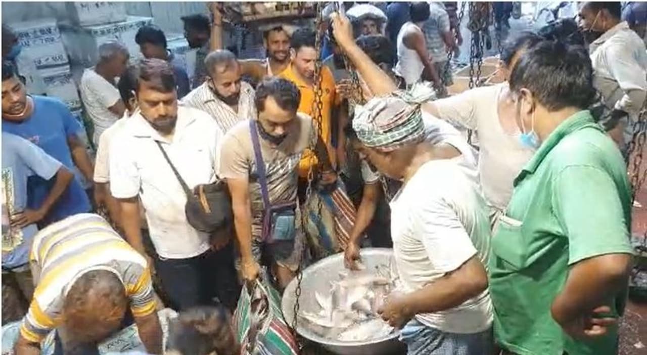 বুধবার পেট্রাপোল সীমান্ত (Petrapole border) দিয়ে ১৪ টি ট্রাকে করে ইলিশ প্রবেশ করেছে রাজ্যে। তারপর সেখান থেকে ট্রাক বদলে গতরাতেই সেগুলি কলকাতার পাইকারি বাজারের উদ্দেশ্যে রওনা দেয়। আর আজ সকালে হাওড়ার পাইকারি বাজারে প্রায় ৮০ মেট্রিক টন পদ্মার ইলিশ এসে পৌঁছেছে।