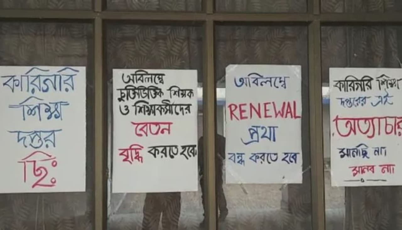 রাজ্য-সহ গোটা দেশ জুড়ে বেকারত্ব সমস্যা ৭৮টি পলিটেকনিক কলেজে শুরু হয়েছে লাগাতার কর্ম বিরতি অনির্দিষ্টকালের এই লাগাতার কর্ম বিরতির আজ একাদশতম দিন বকেয়া বেতন এবং আর্থিক বঞ্চনার প্রতিবাদে এই কর্ম বিরতি