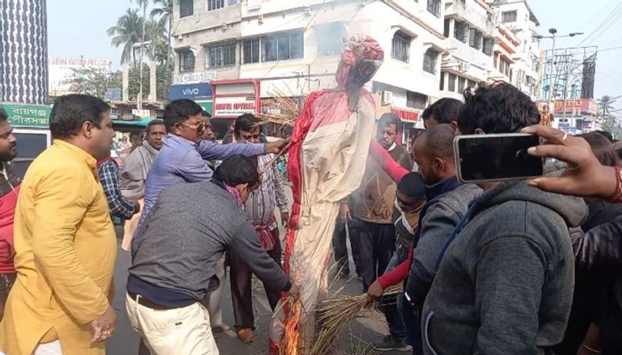 দু'পয়সার প্রেস এমনটাই মন্তব্য করতে শোনা গিয়েছিল মহুয়া মৈত্র-কে এর পর থেকেই এই নিয়ে শুরু হয় প্রতিবাদ সেই প্রতিবাদ করতেই দেখা গেল উত্তর দিনাজপুরে সেখানে কুশপুতুল পুড়িয়ে চলল প্রতিবাদ