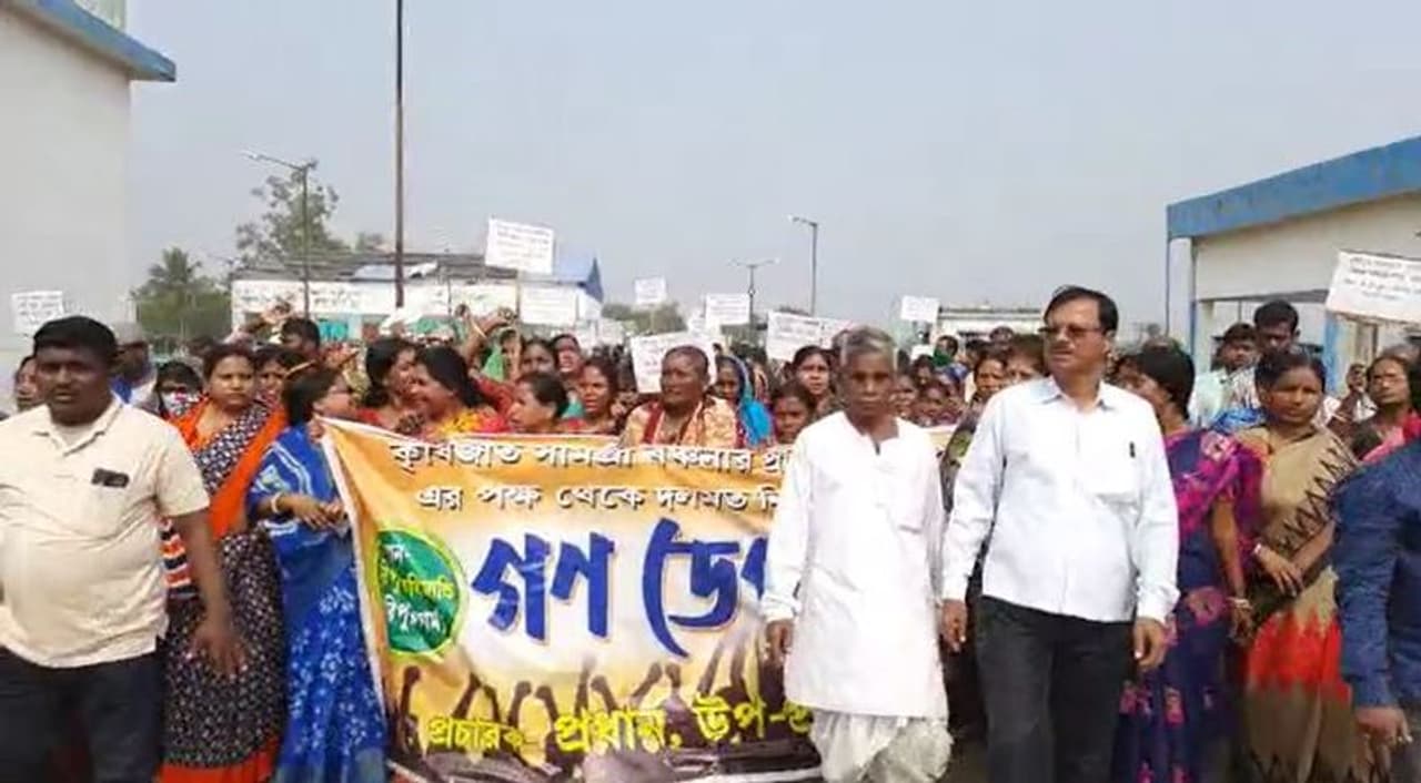 একাধিক দাবি তুলে রাজ্য সরকারের কিসান মান্ডিতে (kisan mandi) বিক্ষোভ (Agitation) দেখানোকে কেন্দ্র করে শুক্রবার (Friday) ধুন্ধুমার অবস্থা হয়েছিল নন্দীগ্রামের (Nandigram) হরিপুরে। ওই কিসান মান্ডির সামনে প্রায় শতাধিক বিজেপি কর্মী বিক্ষোভ (BJP Worker Agitation) দেখিয়েছিল। বিক্ষোভের পাশাপাশি কিসান মান্ডির এক্সটেনশন অফিসার বিদ্যুৎবরণ মণ্ডলকে তারা বেধড়ক মারধর (Beaten) করে বলে অভিযোগ। গুরুতর জখম (Injured) হন ওই আধিকারিক। ঘটনার জেরে ব্যাপক উত্তেজনা ছড়িয়ে পড়ে এলাকায়। এই ঘটনায় ৬ জনকে আটক করেছে পুলিশ (Police)। আর তার জেরে শুক্রবারের পর শনিবারও (Saturday) নন্দীগ্রামের পরিস্থিতি উত্তপ্ত হয়ে রয়েছে। কর্মীদের আটকের প্রতিবাদে নন্দীগ্রামে আজ ১২ ঘণ্টার বনধ (Bandh) ডেকেছে বিজেপি। সকাল ৬টা থেকে সন্ধে ৬ টা পর্যন্ত ১২ ঘণ্টার বনধের ডাক দিয়েছে তমলুক সাংগঠনিক জেলা বিজেপি নেতৃত্ব। রাস্তায় টায়াল জ্বালিয়ে বিক্ষোভ দেখাচ্ছে তারা।
