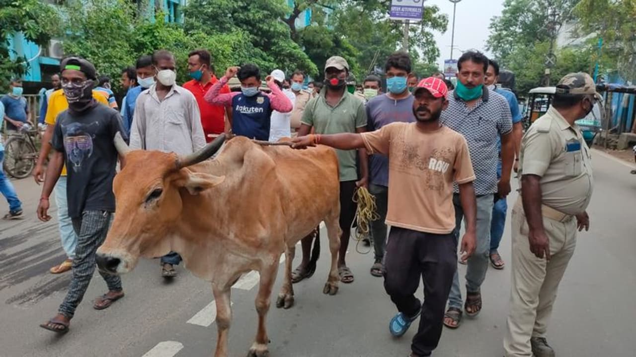 সকাল থেকে রাস্তায় টহল দিচ্ছেন পুলিশ কর্মীরা। তবে তাঁরা একা নন, তাঁদের সঙ্গেই রয়েছেন পৌর প্রশাসক, প্রাক্তন কাউন্সিলার ও পৌরসভার কর্মীরা। অনেকেই প্রথমে ভেবেছিলেন হয়তো যাঁরা মাস্ক না পরে বের হচ্ছেন তাঁদের ধরা হচ্ছে। কিন্তু, তা তো রোজকার ঘটনা। এতে পৌরকর্মীরা থাকেন না। গোটা এলাকা যেন কেমন থমথমে। তারপরই গরুর পিছনে দৌড়াতে দেখা গেল পুলিশ কর্মীদের। তখনই খোলসা হল বিষয়টি।