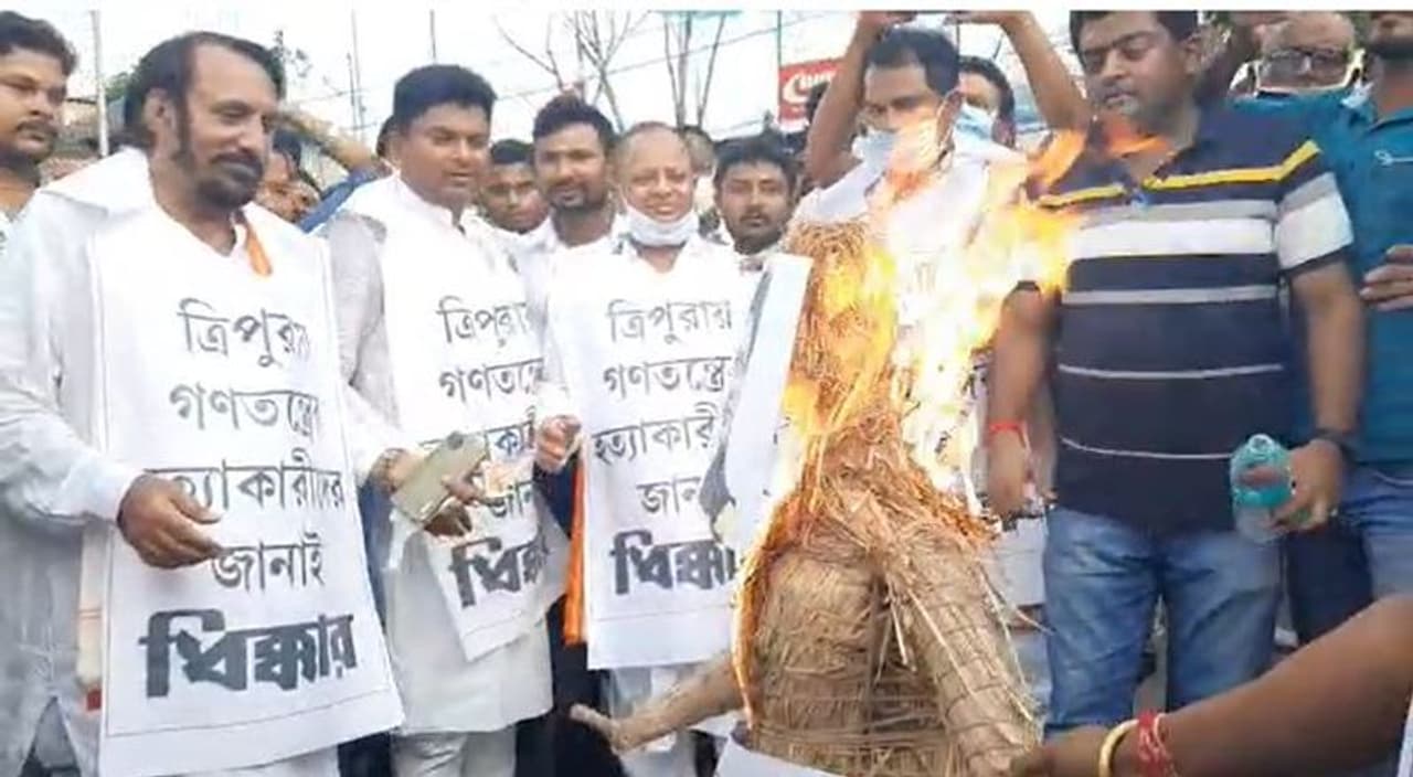 ত্রিপুরায় তৃণমূল নেতা দেবাংশু ভট্টাচার্য, জয়া দত্ত, এবং সুদীপ রাহার উপর হামলার প্রতিবাদে রায়গঞ্জ শহরে বিক্ষোভ দেখাল স্থানীয় তৃণমূল নেতৃত্ব। ত্রিপুরার মুখ্যমন্ত্রী বিপ্লব দেবের কুশপুত্তলিকা দাহ করে তারা। রায়গঞ্জ শহরের ঘড়িমোড়ে আয়োজিত এই বিক্ষোভ কর্মসূচিতে উপস্থিত ছিলেন রাজ্যের মাদ্রাসা বিষয়ক সংখ্যালঘু উন্নয়ন দপ্তরের মন্ত্রী গোলাম রব্বানি, জেলা তৃণমূল কংগ্রেসের সভাপতি কানাইয়ালাল আগরওয়াল, করনদিঘির বিধায়ক তথা উত্তর দিনাজপুর জেলা যুব তৃণমূল কংগ্রেস সভাপতি গৌতম পাল, হেমতাবাদের তৃণমূল বিধায়ক সত্যজিৎ বর্মন সহ রায়গঞ্জ পুরসভার চেয়ারম্যান সন্দীপ বিশ্বাস, ভাইস চেয়ারম্যান অরিন্দম সরকার সহ অন্য তৃণমূল নেতা-কর্মীরা।