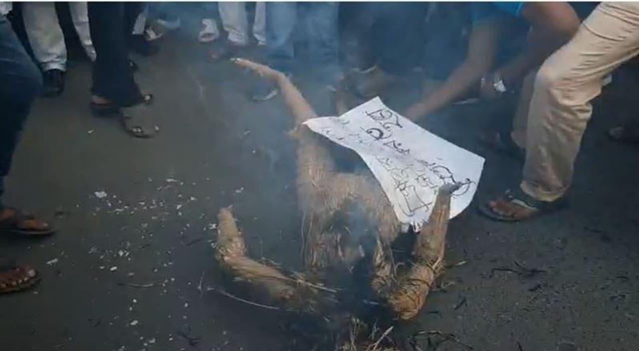ত্রিপুরায় তৃণমূল নেতাদের উপর হামলার প্রতিবাদে রায়গঞ্জ শহরে বিক্ষোভ দেখাল স্থানীয় তৃণমূল নেতৃত্ব। ত্রিপুরার মুখ্যমন্ত্রী বিপ্লব দেবের কুশপুত্তলিকা দাহ করে তারা।