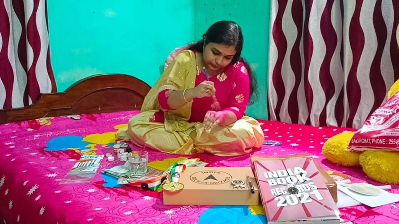 পড়াশোনার পাশাপাশি ছোট থেকেই আঁকতে ভালোবাসে স্নিগ্ধা। হাতের কাছে যা পেত তাতেই ছবি আঁকত। তবে গতে বাঁধা নয়। অন্যরকম আঁকার নেশা ছিল বরাবরই। আর সেই সৃষ্টির নেশা থেকেই আর্ট পেপার বা অন্য কিছুতে নয় নিজের হাতেই ছবি আঁকতে শুরু করে সে। হাতের মধ্যেই রঁঙের মাধ্যমে ফুটিয়ে তুলত বিভিন্ন পশুপাখির মুখের ছবি। আর এবার তা এঁকেই ইন্ডিয়া বুক অফ রেকর্ডসে নাম তুলল বালুরঘাট শহরের রথতলা এলাকার বাসিন্দা তথা বি ফার্ম নিয়ে পড়াশোনা করা স্নিগ্ধা সমাজদার।
