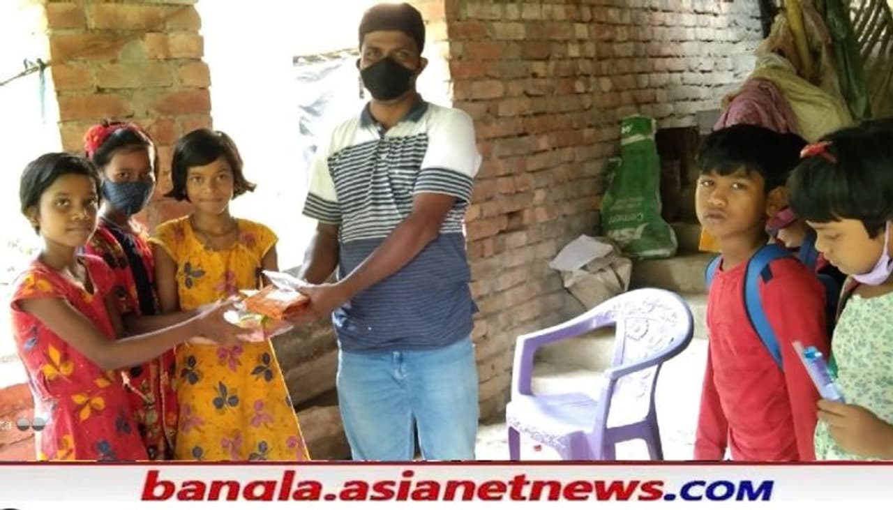 কোভিডে স্কুল বন্ধে, বাড়ির দুয়ারে পাঠশালা খুলেছিলেন রথীন ভৌমিক। এদিন শিক্ষক দিবসে সেই শিক্ষককে ফুল মিষ্টি চকোলেট দিয়ে শ্রদ্ধা জানাল তাঁর খুদে ছাত্র-ছাত্রীরা।
