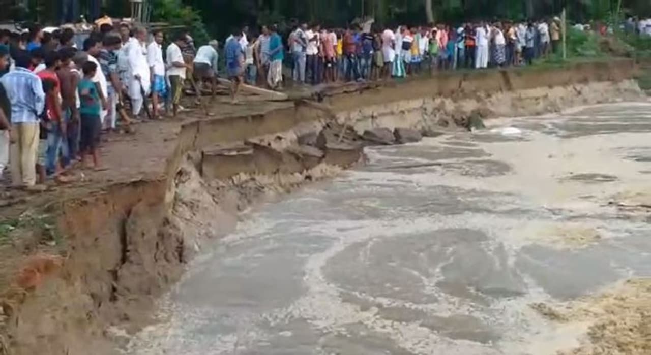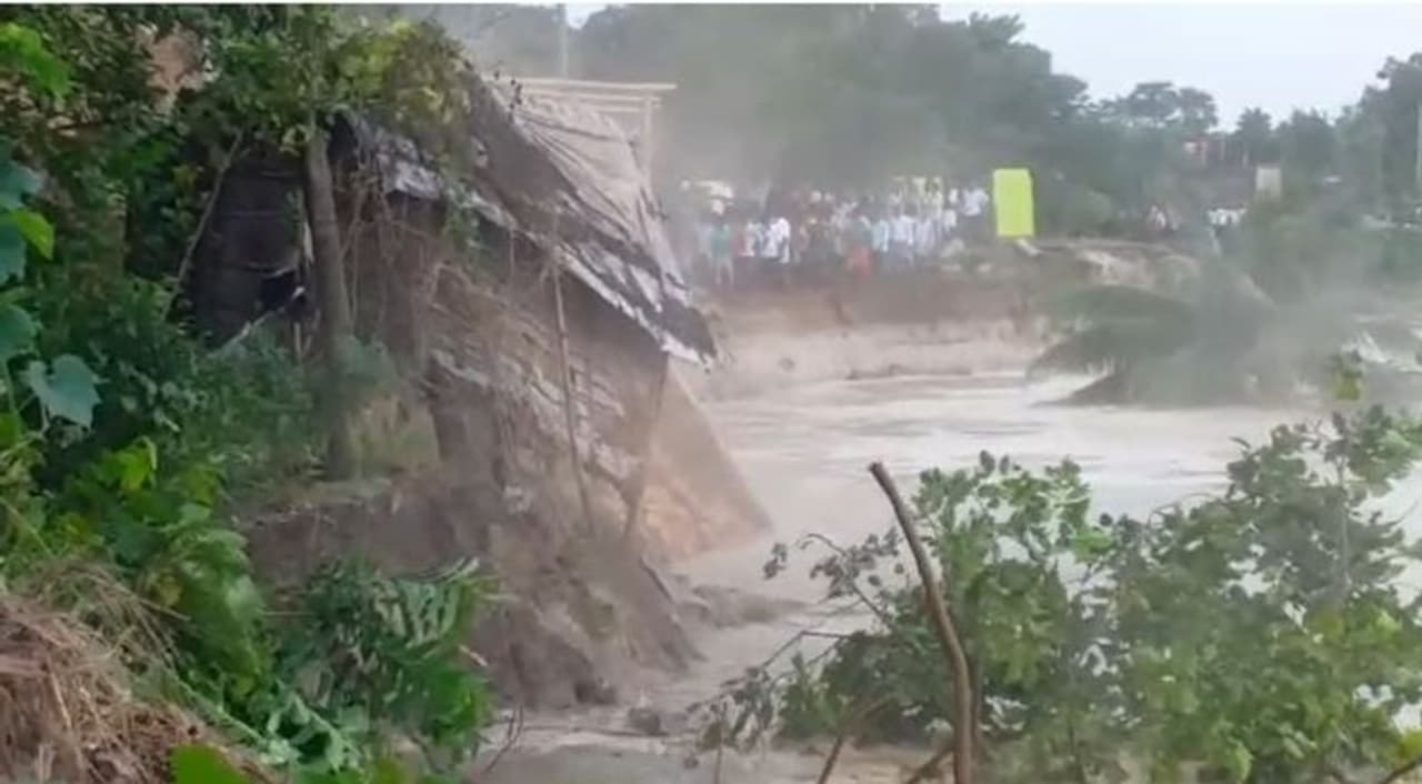 মালদহে ভয়াবহ নদী ভাঙন। চোখের সামনে গঙ্গায় তলিয়ে গেল শতাধিক বাড়ি। প্রায় এক কিলোমিটার এলাকাজুড়ে ভয়াবহ তাণ্ডব চালাল গঙ্গা। স্থানীয়দের চোখের সামনে নদীগর্ভে তলিয়ে গেল একের পর এক পাকা বাড়ি ও গাছপালা। মালদহের বৈষ্ণবনগরের চিনাবাজার ও বালুটোলা এলাকায় ধরা পড়ল এই ছবি। এর জেরে চরম আতঙ্ক ছড়িয়েছে এলাকায়।
