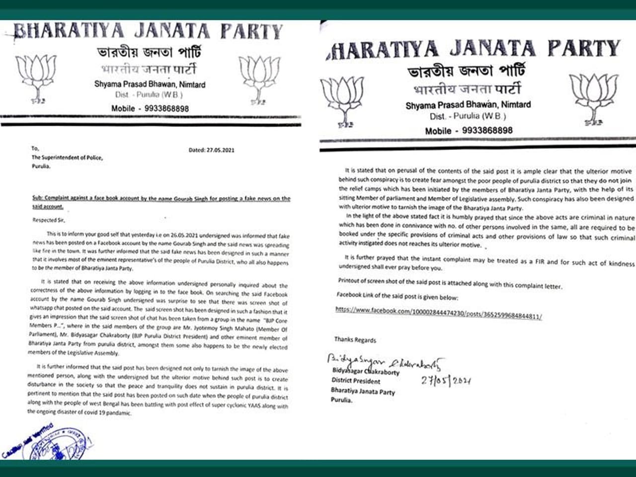 এই মেসেজের স্ক্রিনশট নিয়ে এখন তুলকালাম পরিস্থিতি। বিজেপি-র জেলা কমিটির নেতারা বৃহস্পতিবার পুরুলিয়া পুলিশ সুপারের সঙ্গে দেখা করেন এবং ভাইরাল হওয়া এই হোয়াটসঅ্যাপ স্ক্রিনশটকে ফেক বলেও দাবি করেন। এই ঘটনায় যারা জড়িত তাদের উপযুক্ত এবং কড়া শাস্তিরও দাবি জানায় পুরুলিয়া জেলা বিজেপি। এমনকী পুলিশ সুপারের সঙ্গে সাক্ষাৎ-এর পর সংবাদমাধ্যমের মুখোমুখি হয়ে আন্দোলনের হুমকি দেয় বিজেপি। নেতারা রীতিমতো হুঁশিয়ারির সুরেই বলেন, এই ঘৃণ্য রাজনৈতিক ষড়যন্ত্রের পর্দা ফাঁস না হলে রাজ্য প্রশাসনকে দেখিয়ে দেওয়া হবে বিজেপি কতটা শক্তিশালী। এমনকী, জেলা বিজেপি-র পক্ষ থেকে লিখিত বিবৃতি দিয়ে ভাইরাল স্ক্রিনশটের নিন্দা করা হয়। সেইসঙ্গে পুরুলিয়া বিজেপির জেলা সভাপতি বিদ্যাসাগর চক্রবর্তী জানিয়েছেন, 'এটা পুরোপুরি ফেক।এটা চক্রান্ত এবং জঘন্য রাজনীতির পরিচয়। যদি আমার বিরুদ্ধে দোষ প্রমাণিত হয় তাহলে আমি হাঁসতে হাঁসতে গ্রেপ্তার বরণ করব।'