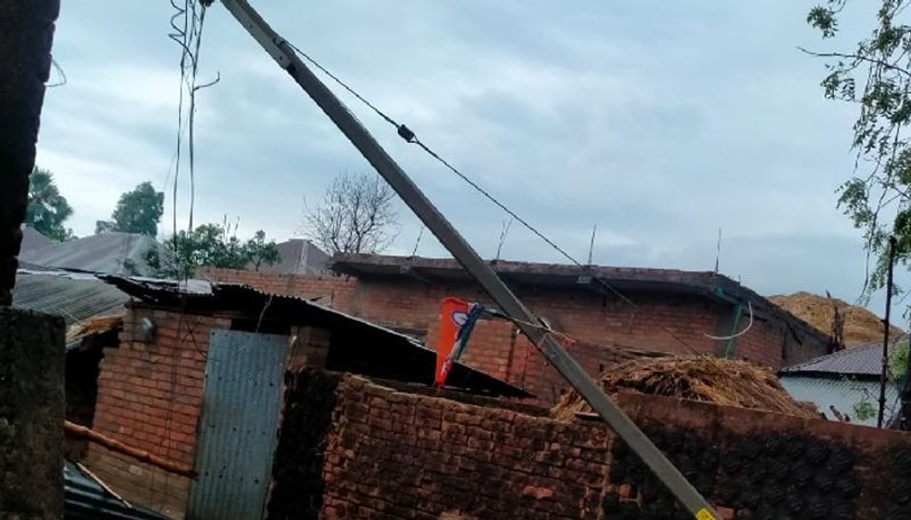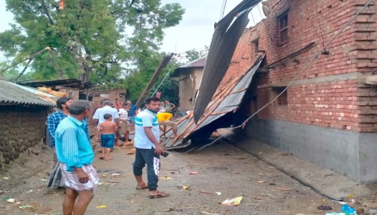 আচমকা ঘূর্ণিঝড়ে তান্ড গ্রামে ঘূর্ণিঝড়ে উড়ল শতাধিক বাড়ির ছাউনি ভেঙে পড়েছে গাছ, বিদ্যুতের খুঁটি, মাটির বাড়ি দুর্গতদের ত্রান শিবিরে নিয়ে যাওয়া হয়