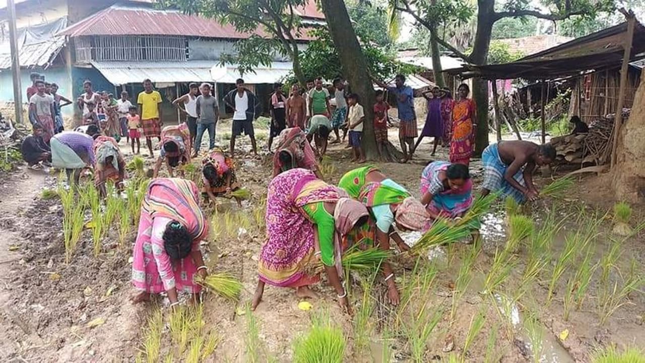 তারই প্রতিবাদে এবং পাকা রাস্তার দাবিতে আজ ওই কাদাময় বেহাল রাস্তায় ধানের চারা লাগিয়ে বিক্ষোভ দেখালেন গ্রামবাসীরা। বেহাল ওই রাস্তার মাঝেই সার দিয়ে ধানের চারা পুঁতে দেন তাঁরা।
