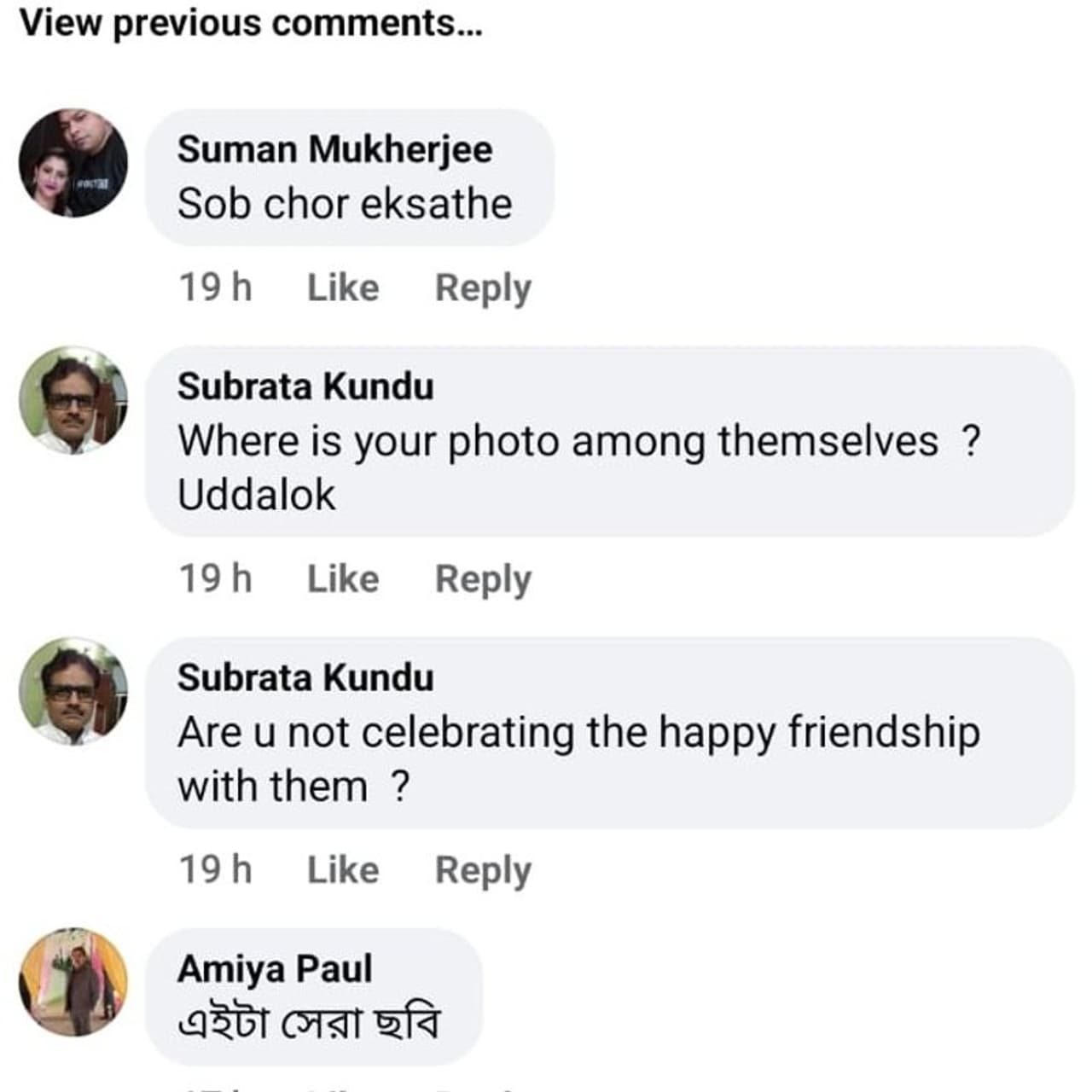 যাইহোক ছবিটি নিয়ে যেথেষ্ট চর্চা হয়েছে। অনেকেই বলেছেন এই ছবিটি ফ্রেন্ডশিপ ডের সেরা ছবি। অনেকেই আবার জানিয়েছেন এটাই বেশ। অনেকে মজা করে অপরকে জিজ্ঞাসা করেছেন এদের সঙ্গে কেন আপনার ছবি নেই। তবে এন নেটিজেন বলেছেন 'সব চোর একসঙ্গে।'