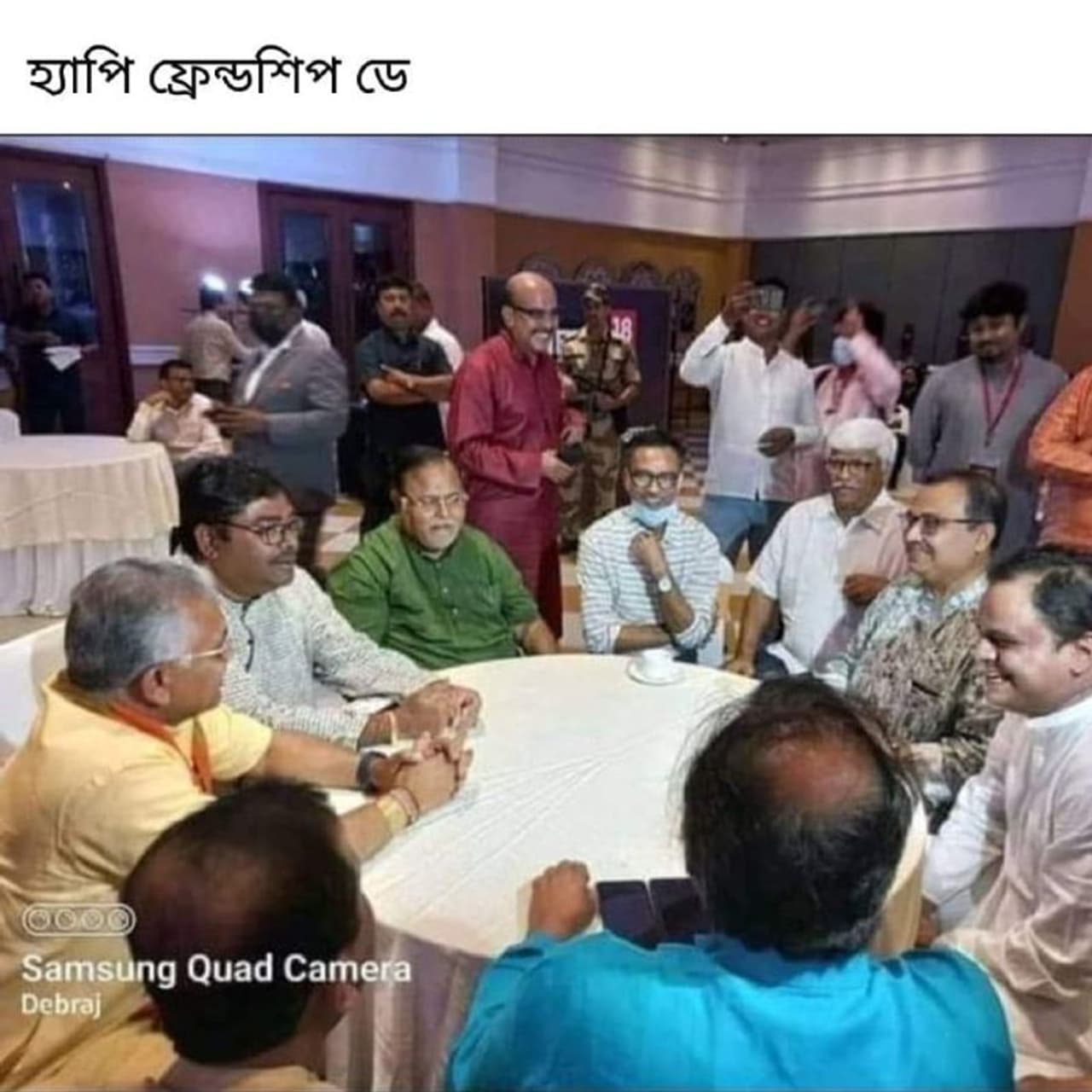 পার্থ চট্টোপাধ্যায়ের ভাইরাল হওয়া ছবিতে রয়েছে ব্রাত্য বসু, কুণাল ঘোষ, সুজন চক্রবর্তীসহ রাজ্য রাজনীতির প্রথম সারির নেতারা। রীতিমত গোলটেবিল বৈঠক! কোথায় ছবিটি তোলা হয়েছে তা স্পষ্ট নয়। ছবিটির সত্যতা যাচাই করেনি এশিয়ানেট নিউজ বাংলা। কিন্তু বেশ কয়েকজনের উপস্থিতি বুঝিয়ে দিচ্ছে কোনও অনুষ্ঠানে সেই ছবি তোলা হয়েছিল।