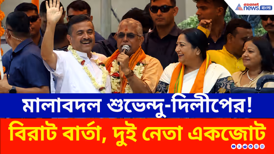 West Bengal Election 2026: মিটল সব দূরত্ব। মুছল সব বিভেদ। আবার পাশাপাশি রাজ্য বিজেপির দুই যুযুধান নেতা শুভেন্দু অধিকারী ও দিলীপ ঘোষ। রোড শোয়ের মাঝে এদিন শুভেন্দু ও দিলীপ একে অপরের গলায় মালা পরিয়ে বুঝিয়ে দিলেন দলের স্বার্থে তারা আবার এক হয়েছেন।