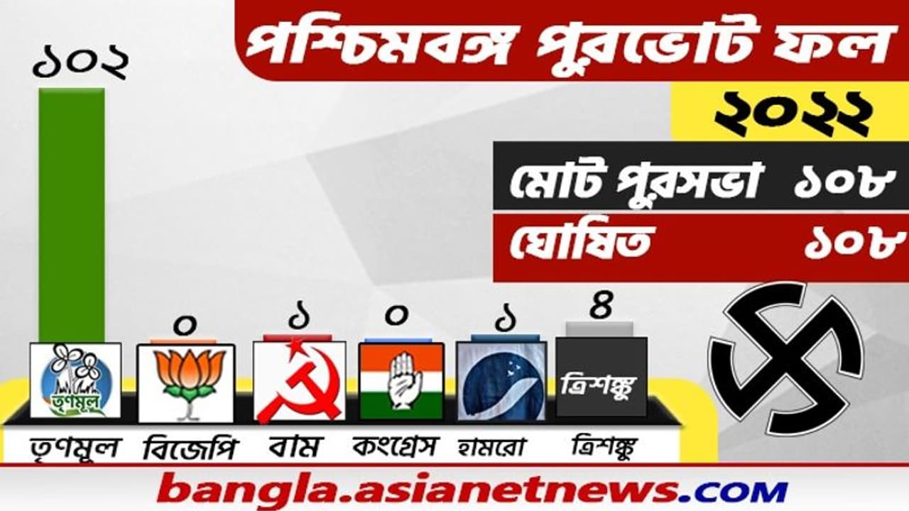 - West Bengal Municipal Election Result 2022:ঘাসফুল-ঝড়ে উড়ে গেল বাম-বিজেপি, ১০২টি আসন জয় তৃণমূলের
