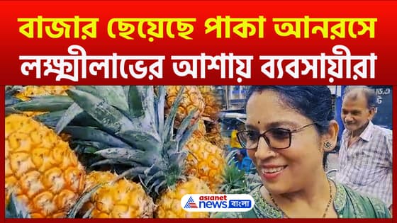 বাজার ছেয়েছে হলুদ-পাকা-রসাল আনারসে, লক্ষ্মীলাভের আশায় ব্যবসায়ীরা
