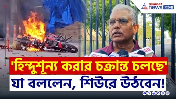 Dilip Ghosh Reacts on Murshidabad Communal Violence : ওয়াকফ আইন প্রত্যাহারের দাবিতে উত্তাল রাজ্য। অশান্তি ছড়িয়েছে রাজ্যের একাধিক জেলায়। প্রাণ বাঁচাতে অন্যত্র আশ্রয় নিয়েছেন একাধিক পরিবার। 'হিন্দুশূন্য করার চক্রান্ত চলছে'।