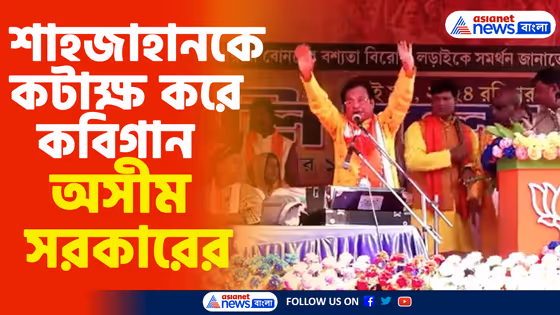 ব্রিগেডে তৃণমূলের জনগর্জন সভার দিনই সন্দেশখালিতে সভা শুভেন্দু অধিকারীর। সেই সভা মঞ্চ থেকে কবিগান ধরলেন বিজেপি বিধায়ক অসীম সরকার। এবার শাহজাহানকে কটাক্ষ করে কবিগান ধরলেন তিনি।