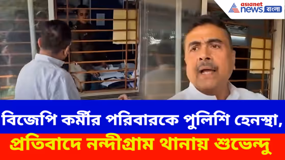 বিজেপি কর্মীকে গ্রেফতারি ও তাঁর পরিবারকে পুলিশি হেনস্থা, প্রতিবাদে নন্দীগ্রাম থানায় শুভেন্দু