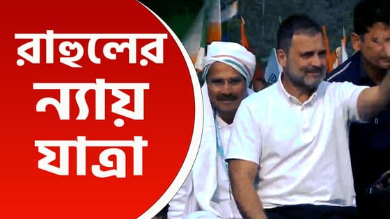 হুড খোলা কালো গাড়ির উপর বসে রাহুল গান্ধী, জলপাইগুড়িতে ভারত জোড়ো ন্যায় যাত্রা