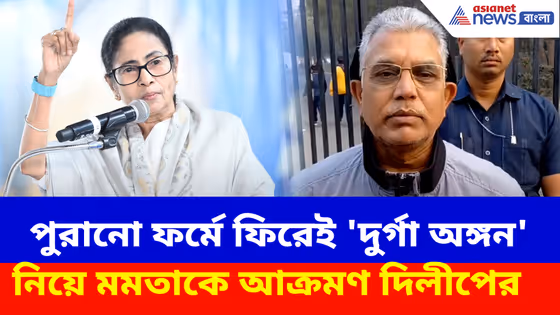 পুরানো ফর্মে ফিরেই 'দুর্গা অঙ্গন' নিয়ে মমতাকে আক্রমণ দিলীপের, দেখুন কী বলছেন