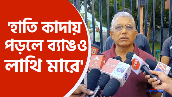 ফের বিস্ফোরক দিলীপ ঘোষ! 'হাতি কাদায় পড়লে ব্যাঙও লাথি মারে'। 'হাতি এখন কিছুটা কাদায় পড়েছে'। 'তাই সবাই এখন দর কষাকষি করছে।'
