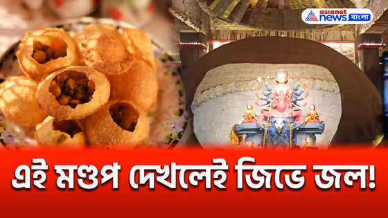 এই পুজো প্যান্ডেল দেখলেই আসবে জিভে জল! বেহালার নতুন দলের এবারের চমক 'ফুচকা'। প্রায় ১ লাখ ফুচকা দিয়ে বানানো হয়েছে এই পুজো প্যান্ডেল। এছাড়াও এই মণ্ডপে ব্যবহার করা হয়েছে শাল পাতা ও বিক্রেতাদের ঝুড়ি।